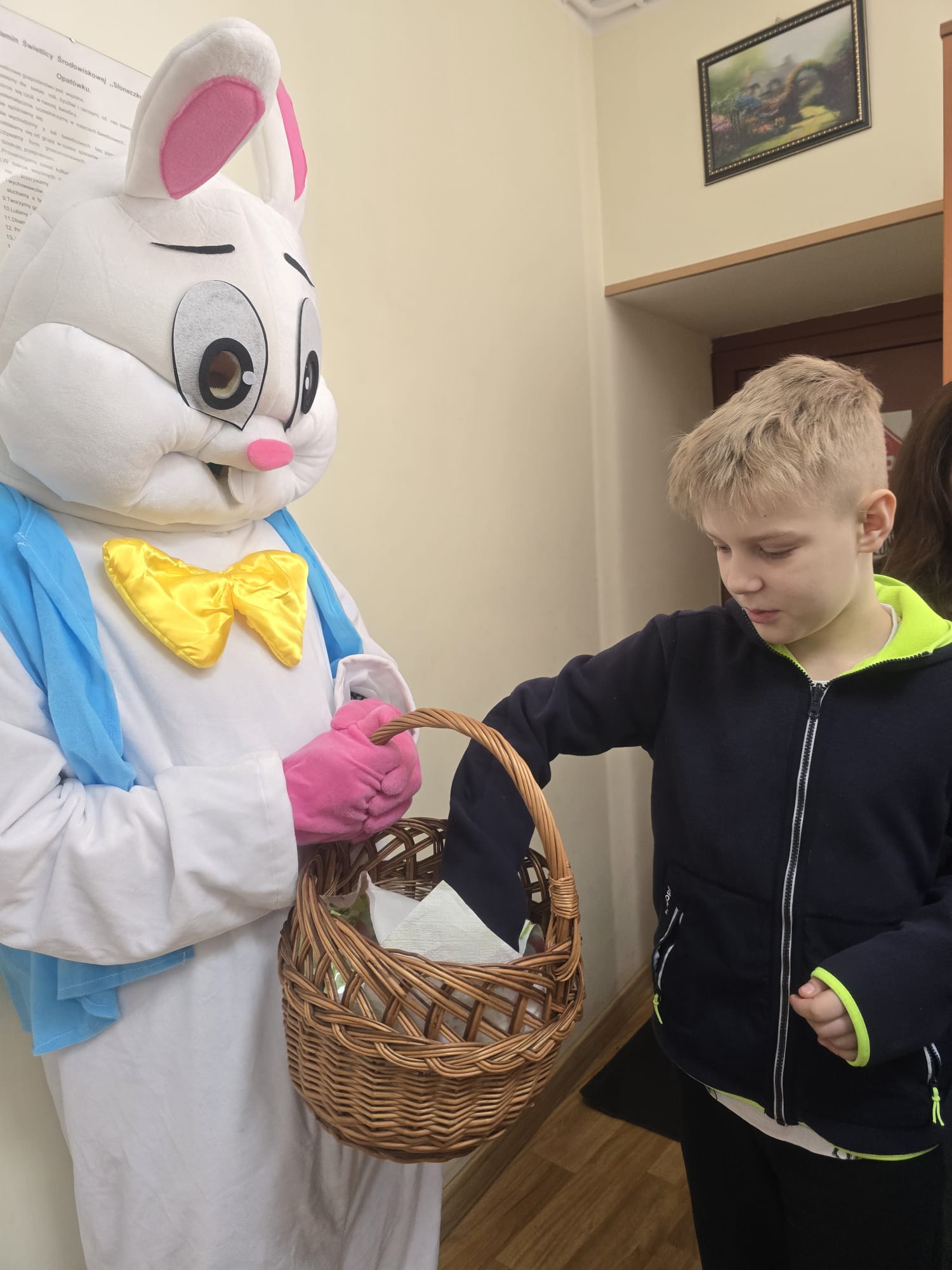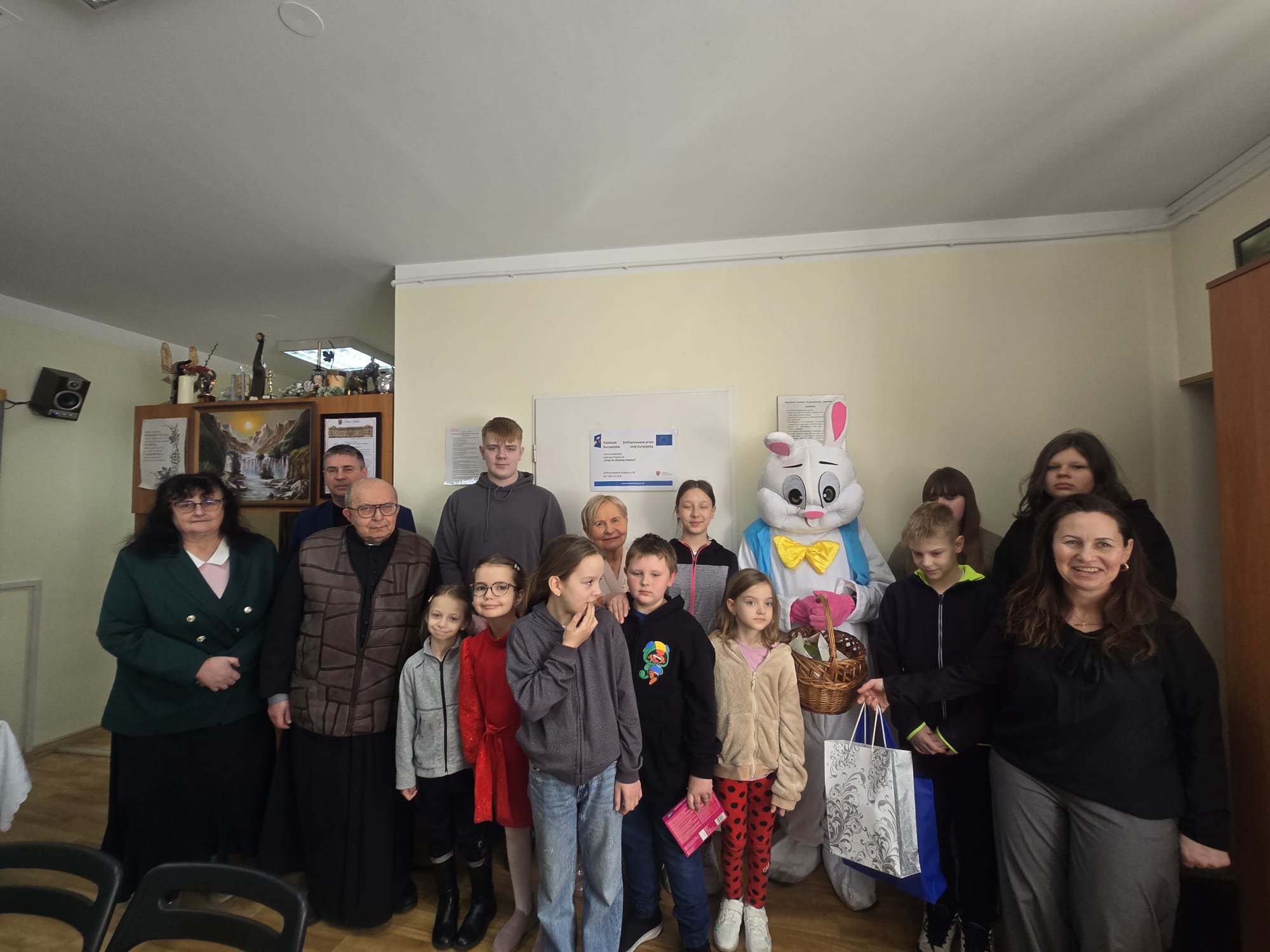 Błogosławieństwa pokarmów przygotowanych na stół wielkanocny dokonał proboszcz Parafii p.w. Najświętszego Serca Pana Jezusa Ks. Prałat Władysław Czamara. Wśród zaproszonych gości byli : Burmistrz Gminy Opatówek - Sebastian Wardęcki, Przewodnicząca Gminnej Komisji Rozwiązywania Problemów Alkoholowych w Opatówku – Halina Marszał-Sroczyńska, Kierownik Gminnego Ośrodka Pomocy Społecznej w Opatówku – Violetta Galant, Asystent Rodziny – Paulina Kasprzak. Niespodzianką dla dzieci było pojawienie się Zajączka Wielkanocnego z koszykiem słodyczy. Spotkanie przebiegło w radosnej atmosferze, były wspominane zwyczaje związane ze świętami Wielkiej Nocy oraz wzajemne życzenia spokojnych świąt i mokrego Dyngusa. Miłym akcentem spotkania było wspólne odśpiewanie „Ody Wielkanocnej” połączone z zagraniem Ody na trąbce przez jedną z wychowanek świetlicy. Dzieci w podziękowaniu za przybycie obdarowały gości okolicznościowymi kartkami.